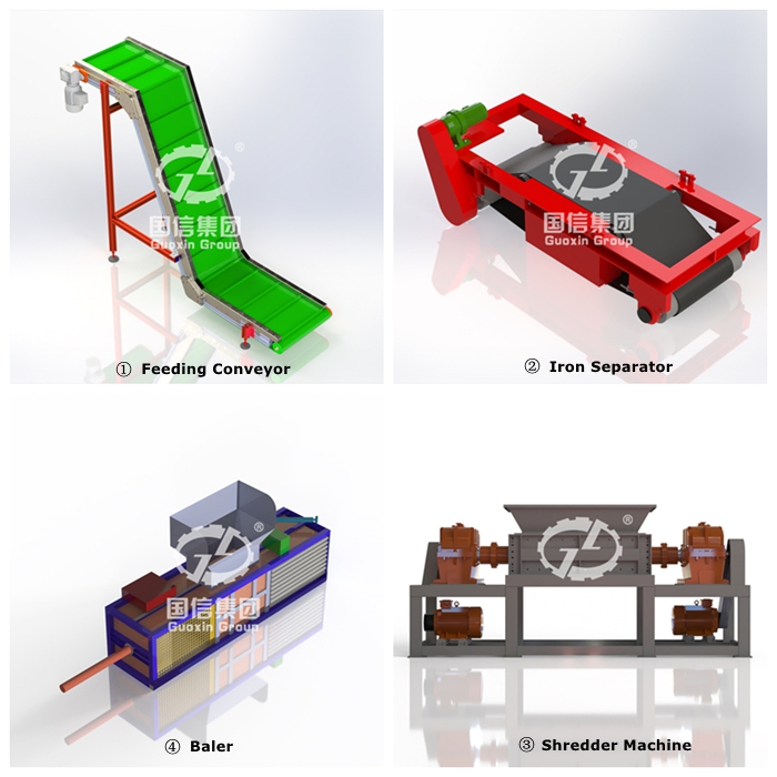 The whole line including the feeding conveyor, rough shredder, iron separator , fine shredder, baler or RDF Briquette Machine.